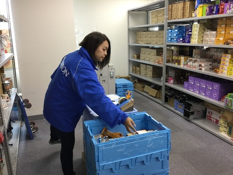 営業所に出社して補充する商品をピッキング&コンテナに入れる